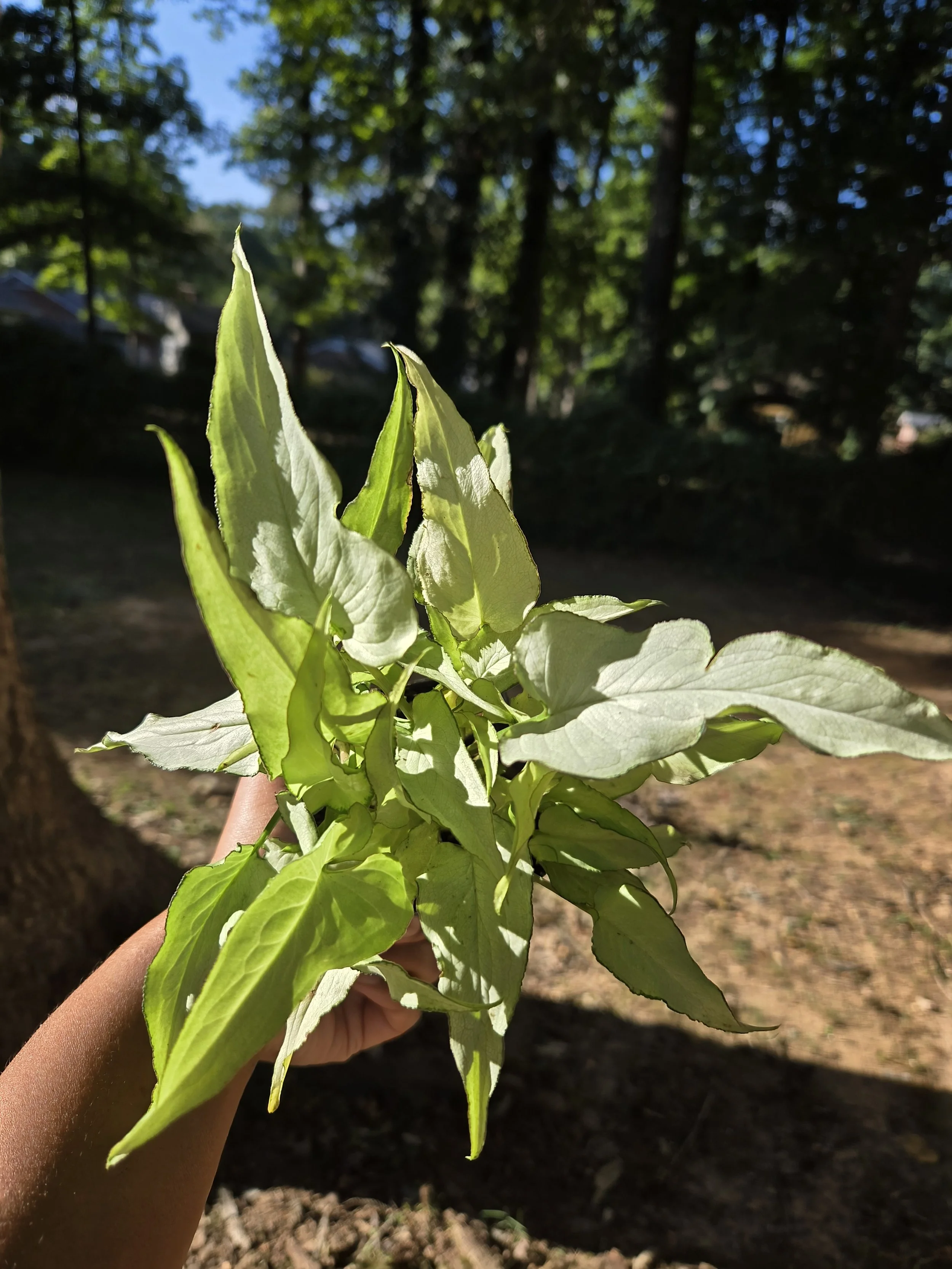 • Prominent white veined heart shaped leaves